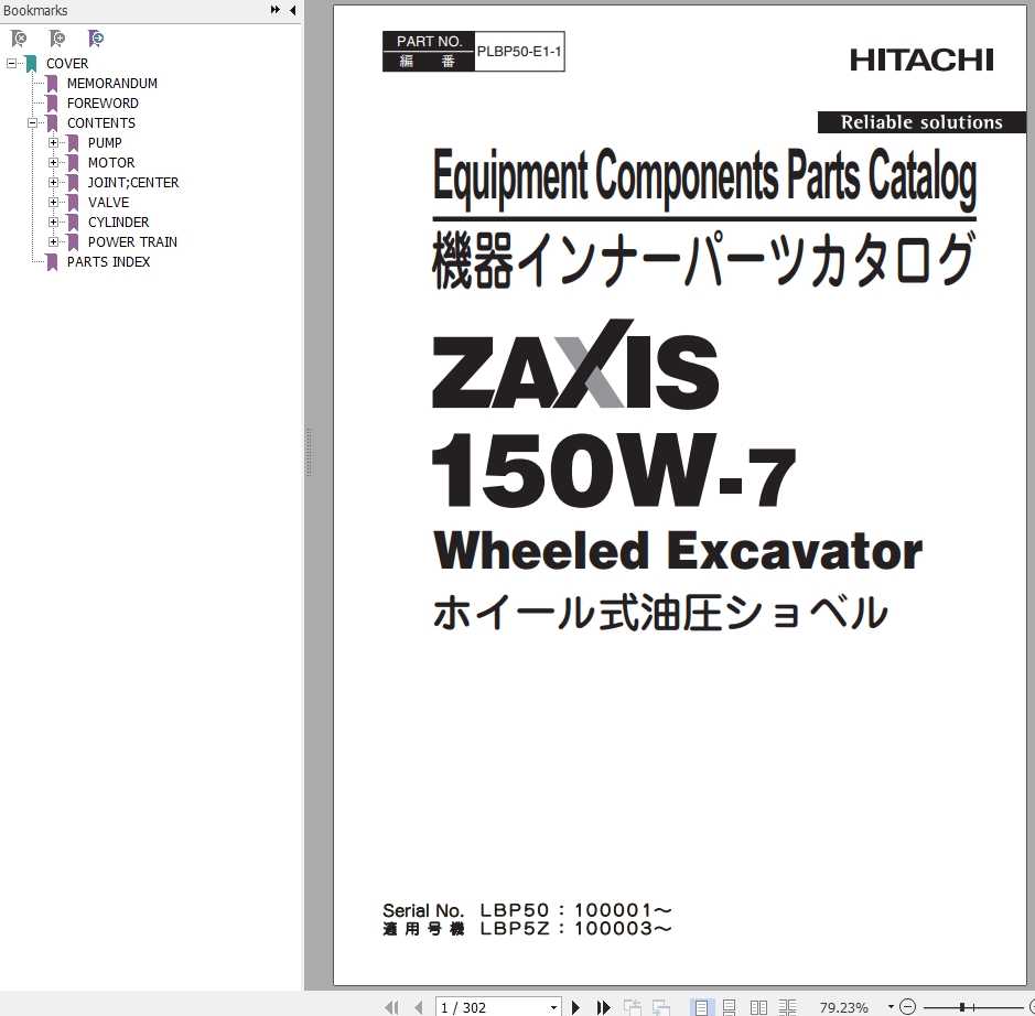 Hitachi ZX150W-7 Parts Catalog PLBP50-E1-1