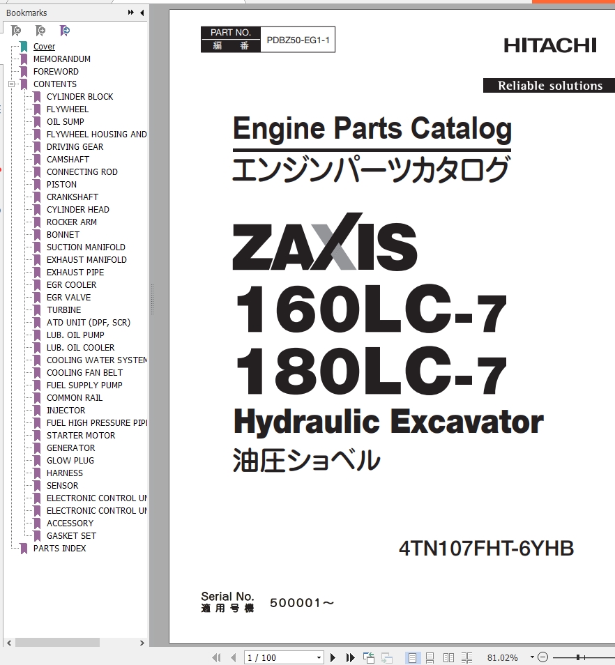 Hitachi ZX160LC-7 ZX180LC-7 Engine Parts Catalog PDBZ50-EG1-1