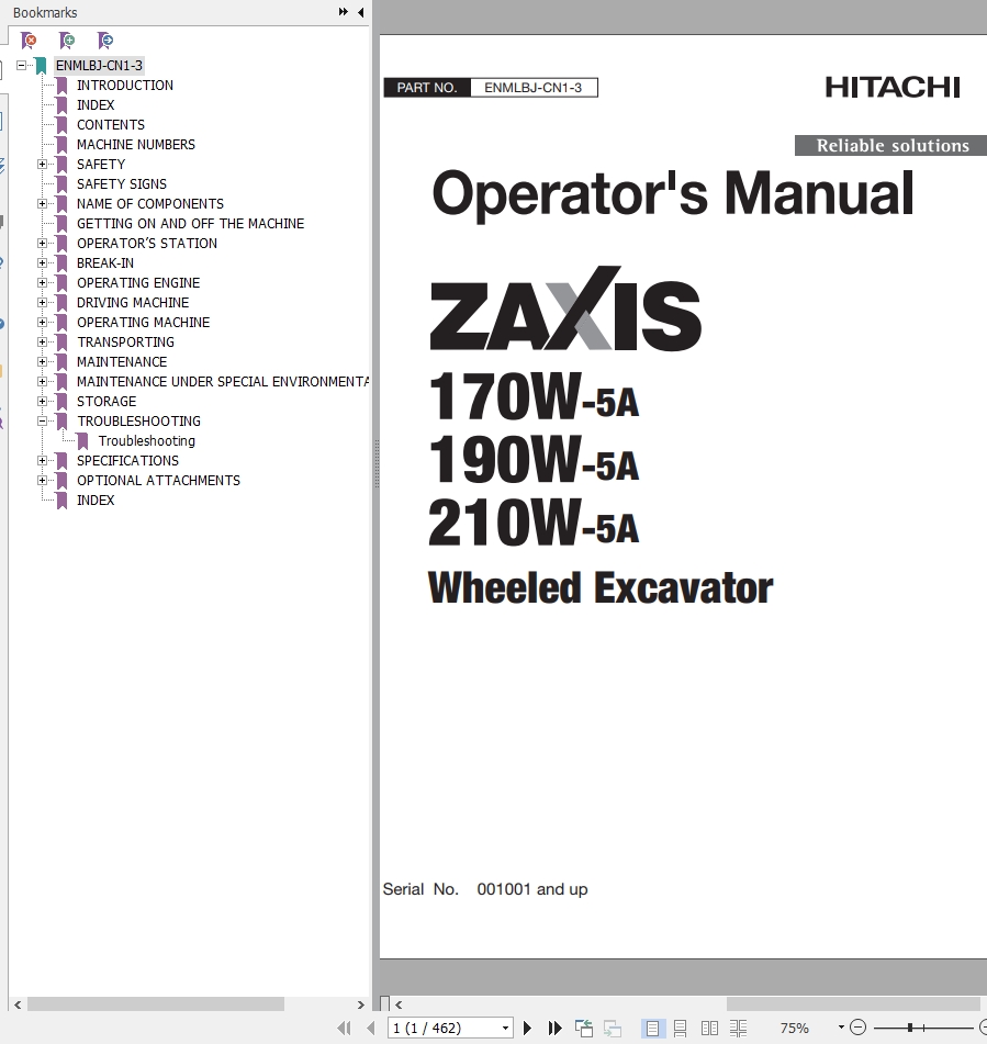 The Bookmarks of Hitachi ZX170-5A ZX2190-5A ZX210-5A Wheeled Excavator Operator's Manual: