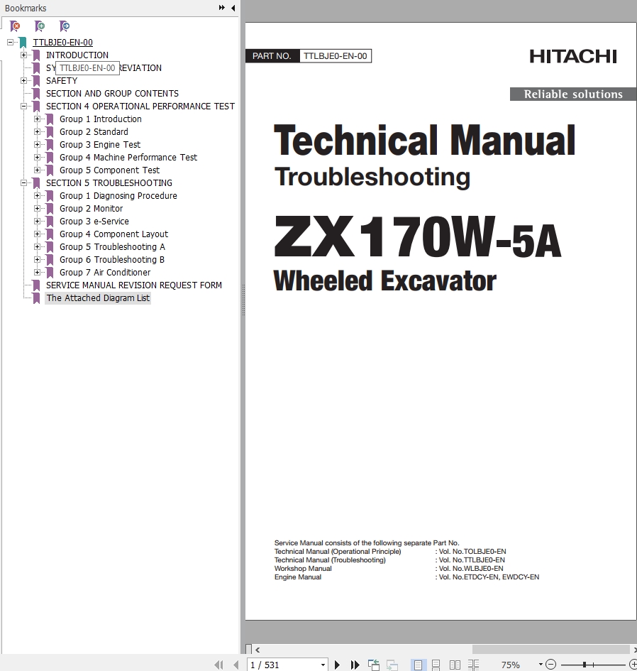 Hitachi ZX170W-5A Technical Manual TTLBJE0-EN-00