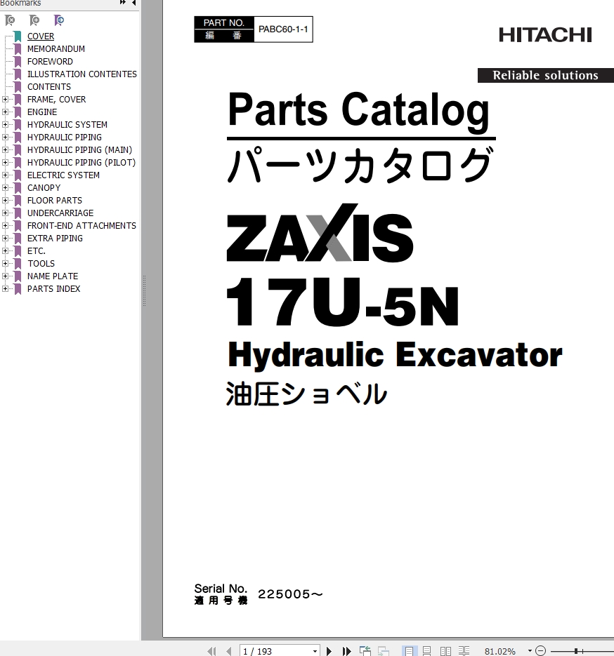 Hitachi ZX17U-5N Parts Catalog PABC60-E1-1