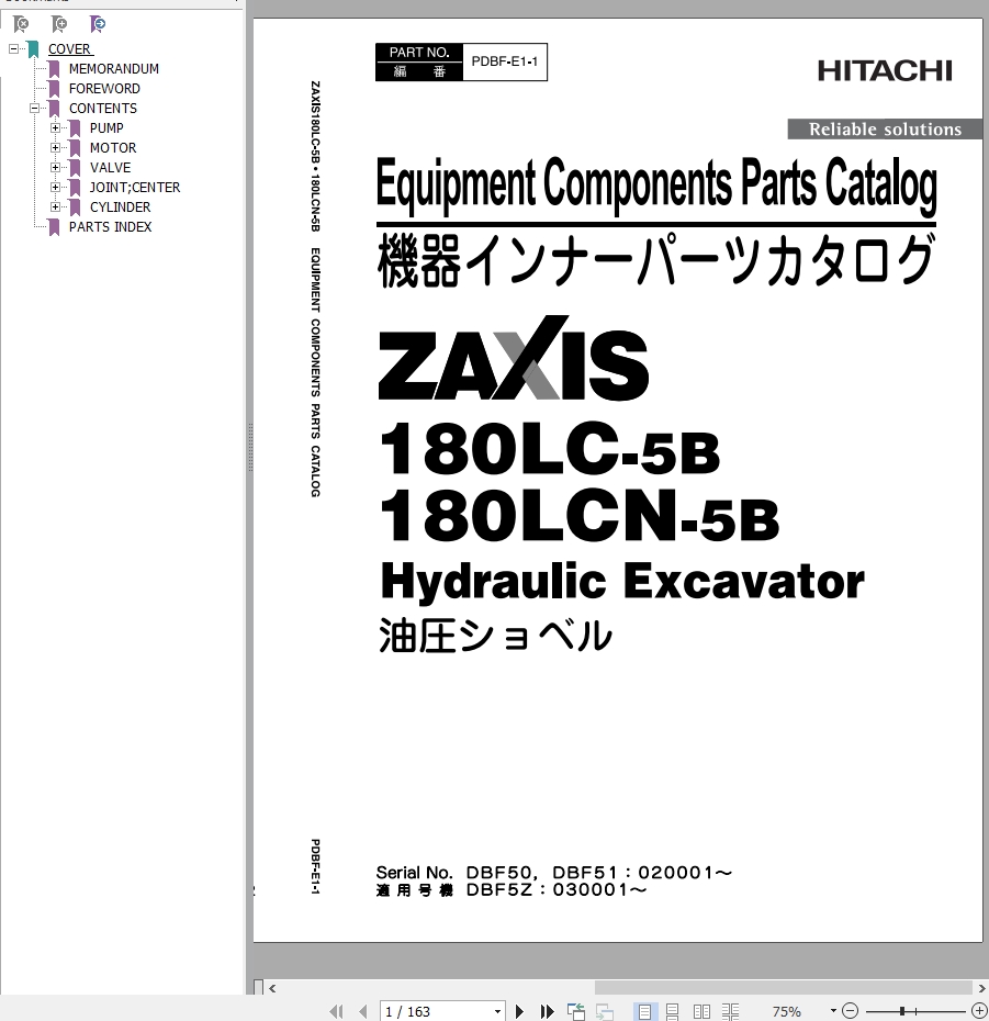 Hitachi ZX180LC-5B ZX180LCN-5B Parts Catalog PDBF-E1-1