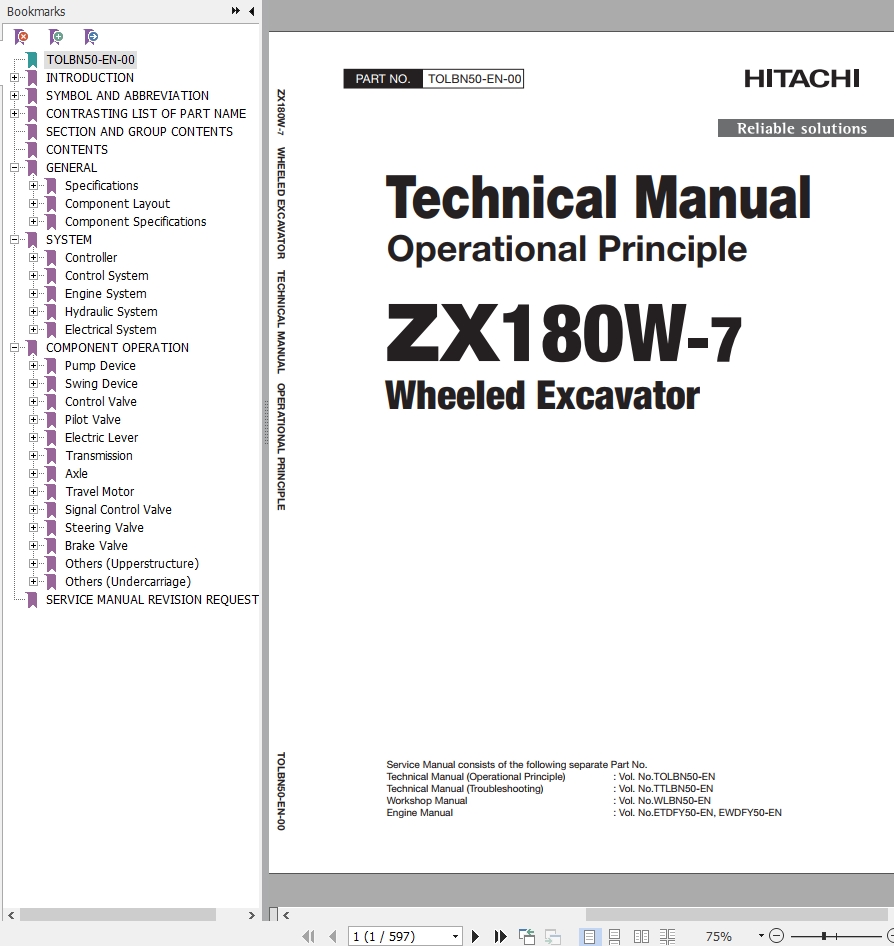 Hitachi ZX180W-7 Technical Manual TOLBN50-EN-00