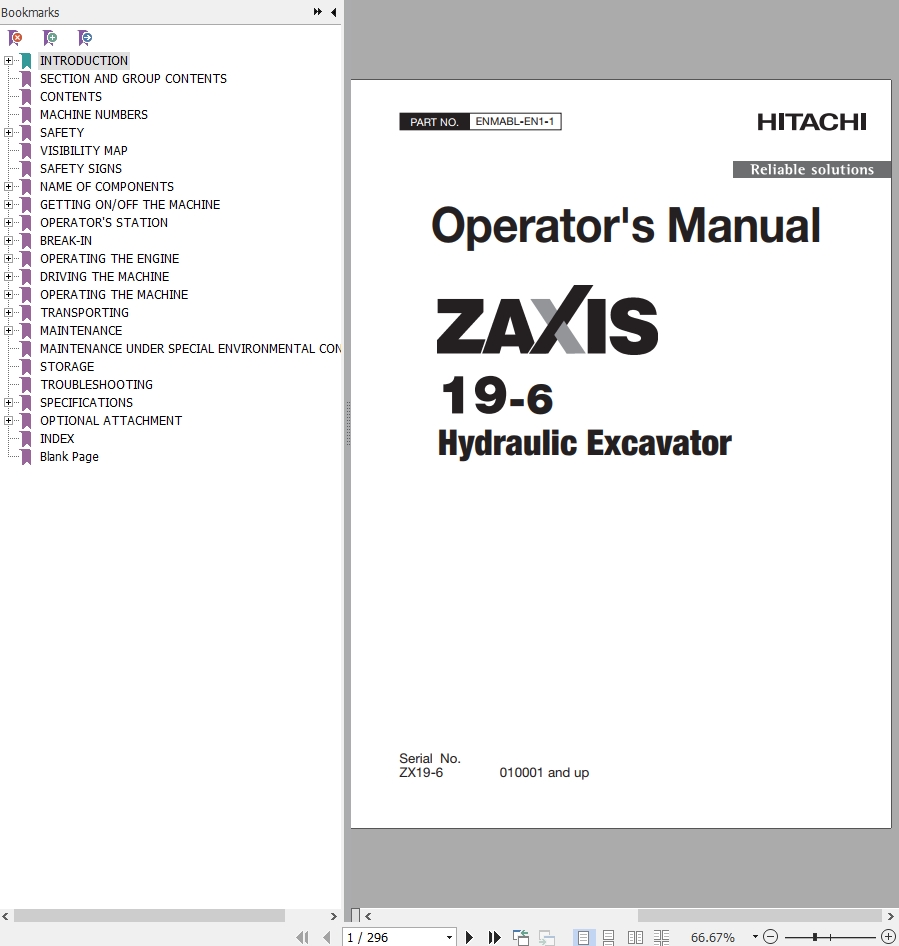 Hitachi ZX19-6 Operator’s Manual ENMABL-EN1-1