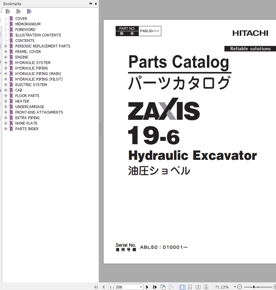 Hitachi ZX19-6 Parts Catalog PABL50-1-1