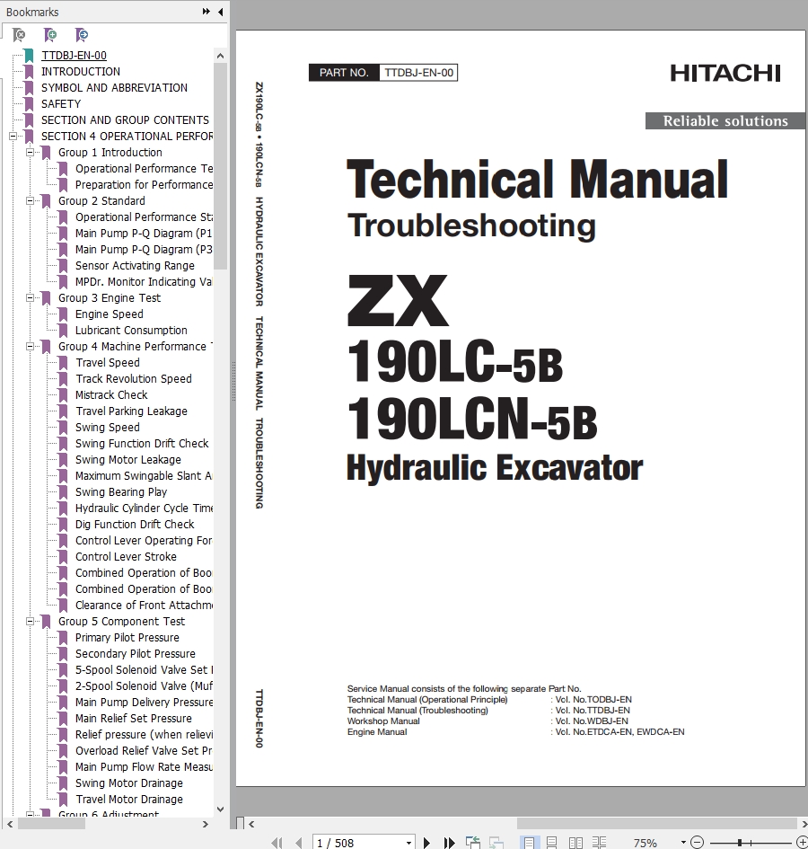 Hitachi ZX190LC-5B ZX190LCN-5B Technical Manual TTDBJ-EN-00