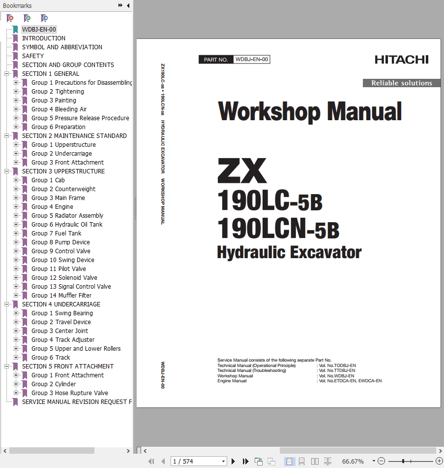 Hitachi ZX190LC-5B ZX190LCN-5B Workshop Manual WDBJ-EN-00
