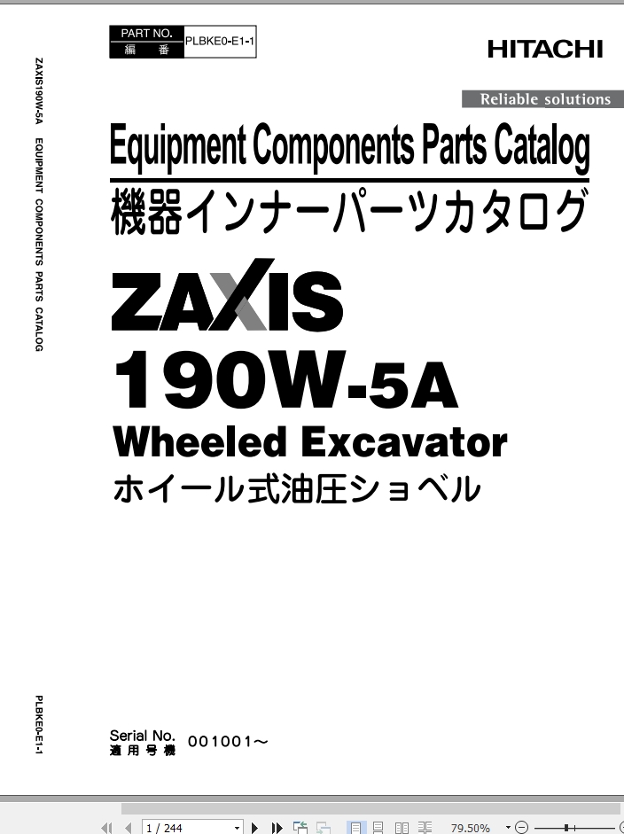 Hitachi ZX190W-5A Parts Catalog PLBKE0-E1-1