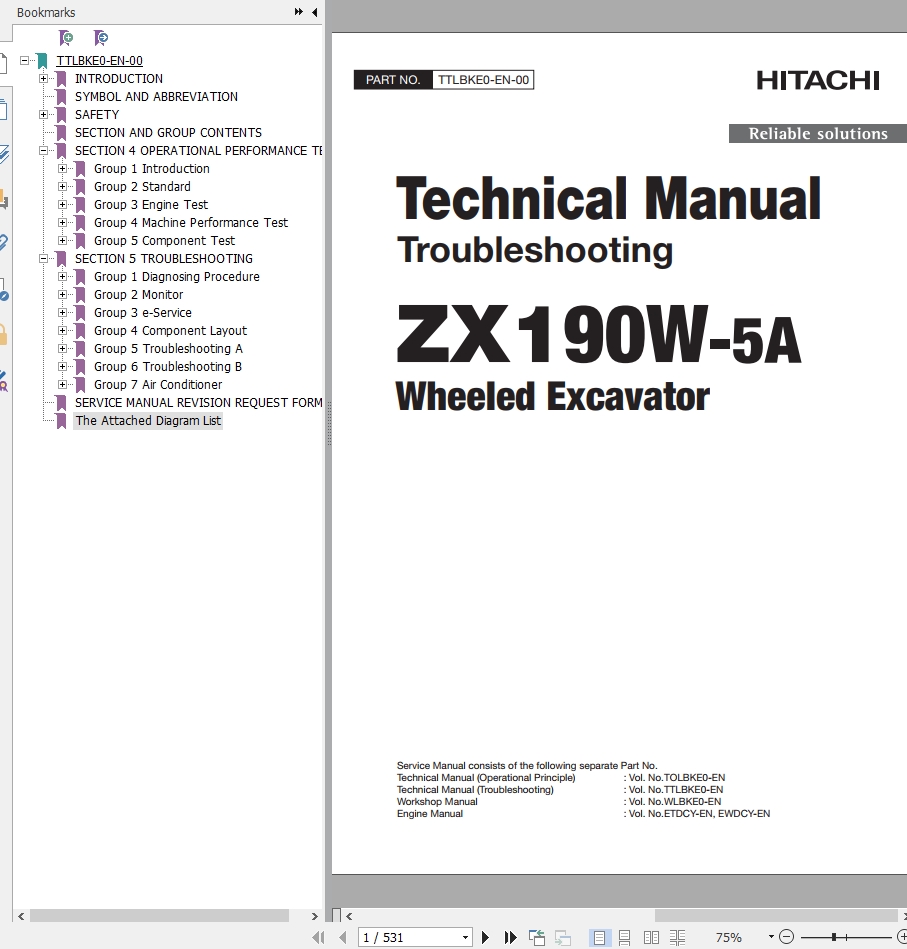 Hitachi ZX190W-5A Technical Manual TTLBKE0-EN-00