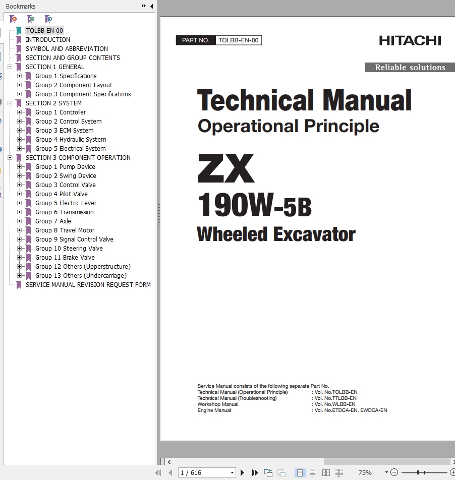 Hitachi ZX190W-5B Technical Manual TOLBB-EN-00