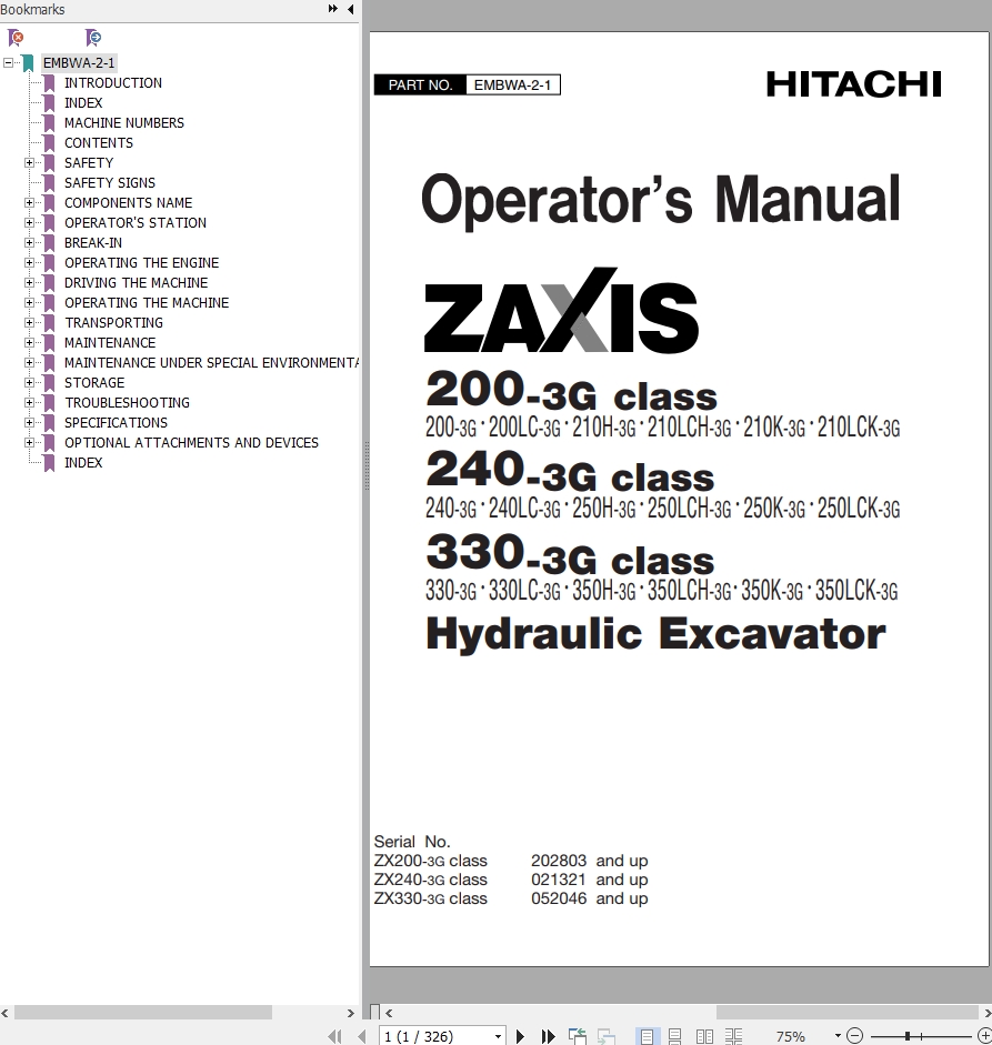 The Bookmarks of Hitachi ZX200-3G ZX240-3G ZX330-3G Class Hydraulic Excavator Operator's Manual: