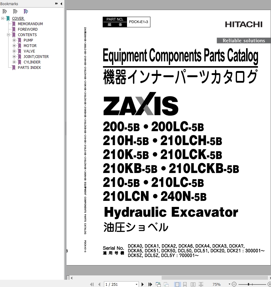 Hitachi ZX200-5B ZX240N-5B Parts Catalog PDCK-E1-3