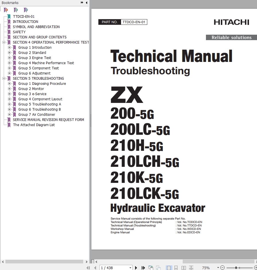Hitachi ZX200-5G ZX210LCK-5G Technical Manual TTDCD-EN-01