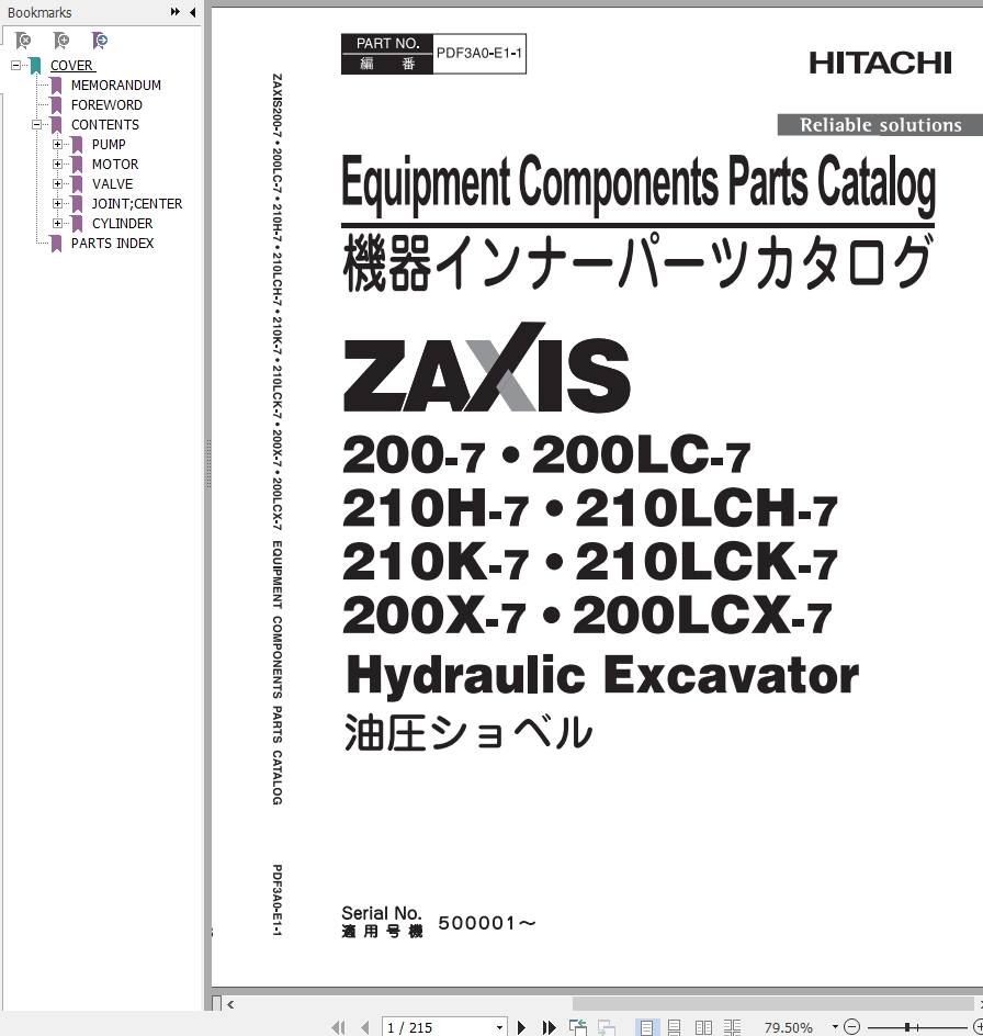 Hitachi ZX200-7 ZX200LCX-7 Parts Catalog PDF3A0-E1-1