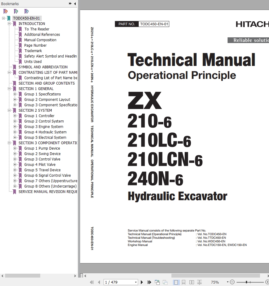 The Bookmarks of Hitachi ZX210-6 ZX240N-6 Hydraulic Excavator Technical Manual: