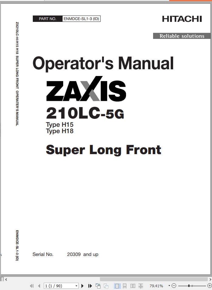 Hitachi ZX210LC-5G Operator's Manual ENMDCE-SL1-3(ID)