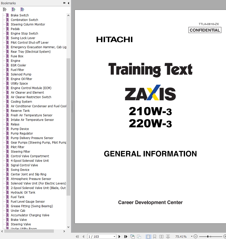 Hitachi ZX210W-3 ZX220W-3 Training Text TTLA-0816-ZX