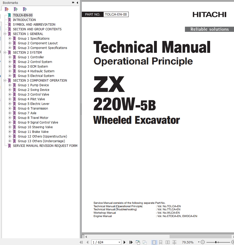 Hitachi ZX220W-5B Technical Manual TOLCA-EN-00