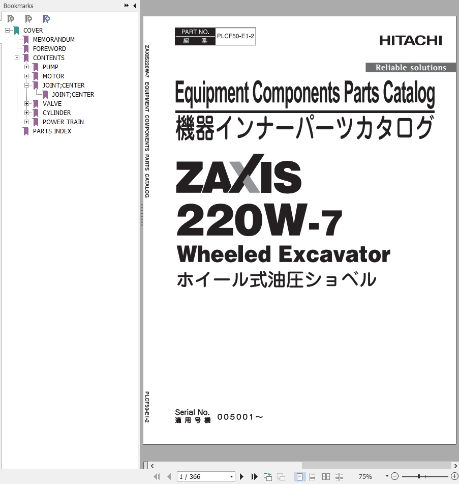 Hitachi ZX220W-7 Parts Catalog PLCF50-E1-2