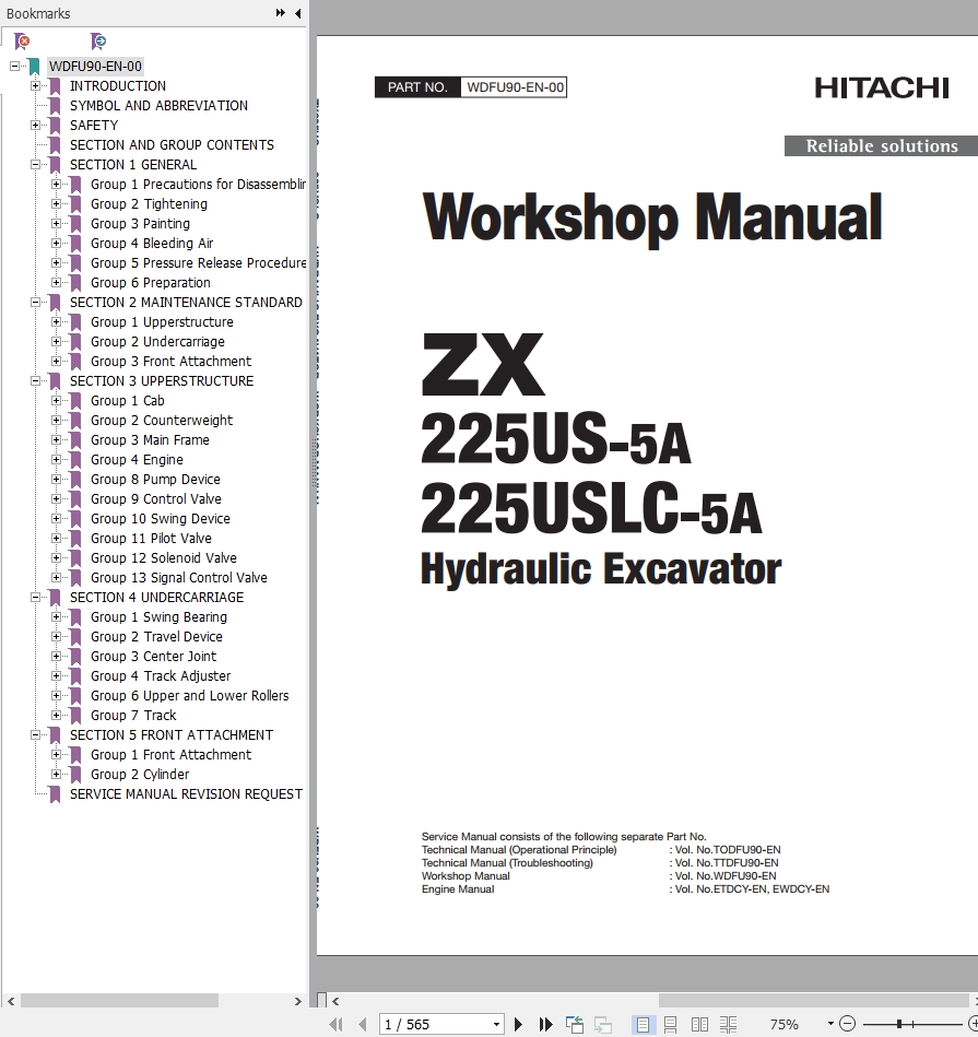 Hitachi ZX225US-5A ZX225USLC-5A Workshop Manual WDFU90-EN-00