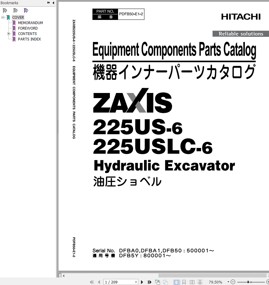 Hitachi ZX225US-6 ZX225USLC-6 Parts Catalog PDFB50-E1-2