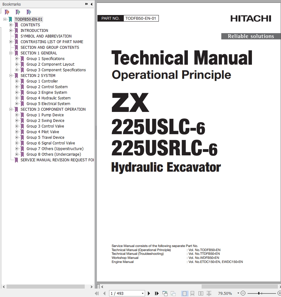 The Bookmarks of Hitachi ZX225USLC-6 ZX225USRLC-6 Hydraulic Excavator Technical Manual: