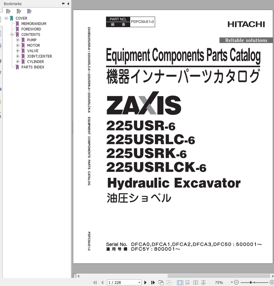 Hitachi ZX225USR-6 ZX225USRLC-6 ZX225USRK-6 ZX225USRLCK-6 Parts Catalog PDFB50-E1-3