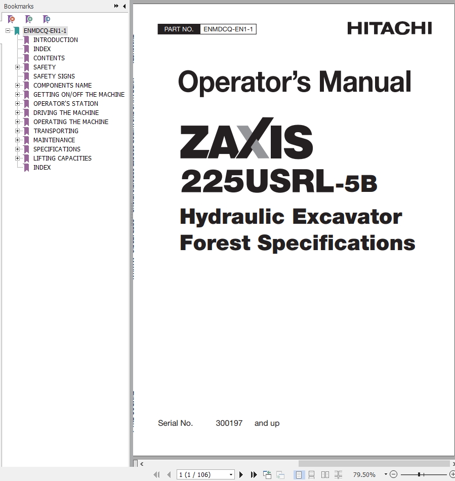Hitachi ZX225USRL-5B Operator's Manual ENMDCQ-EN1-1