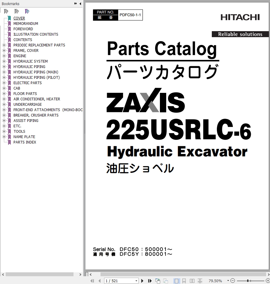 Hitachi ZX225USRLC-6 Parts Catalog PDFC50-1-1