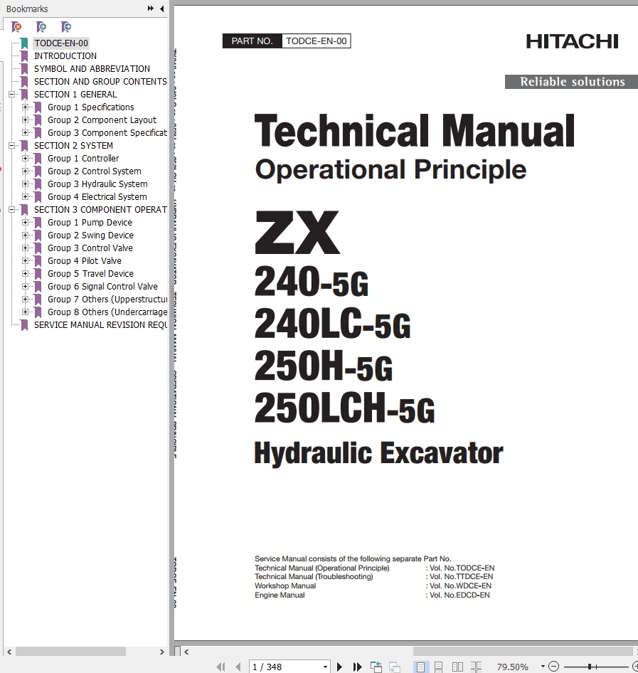 Hitachi ZX240-5G ZX240LC-5G ZX250H-5G ZX250LCH-5G Technical Manual TODCE-EN-00