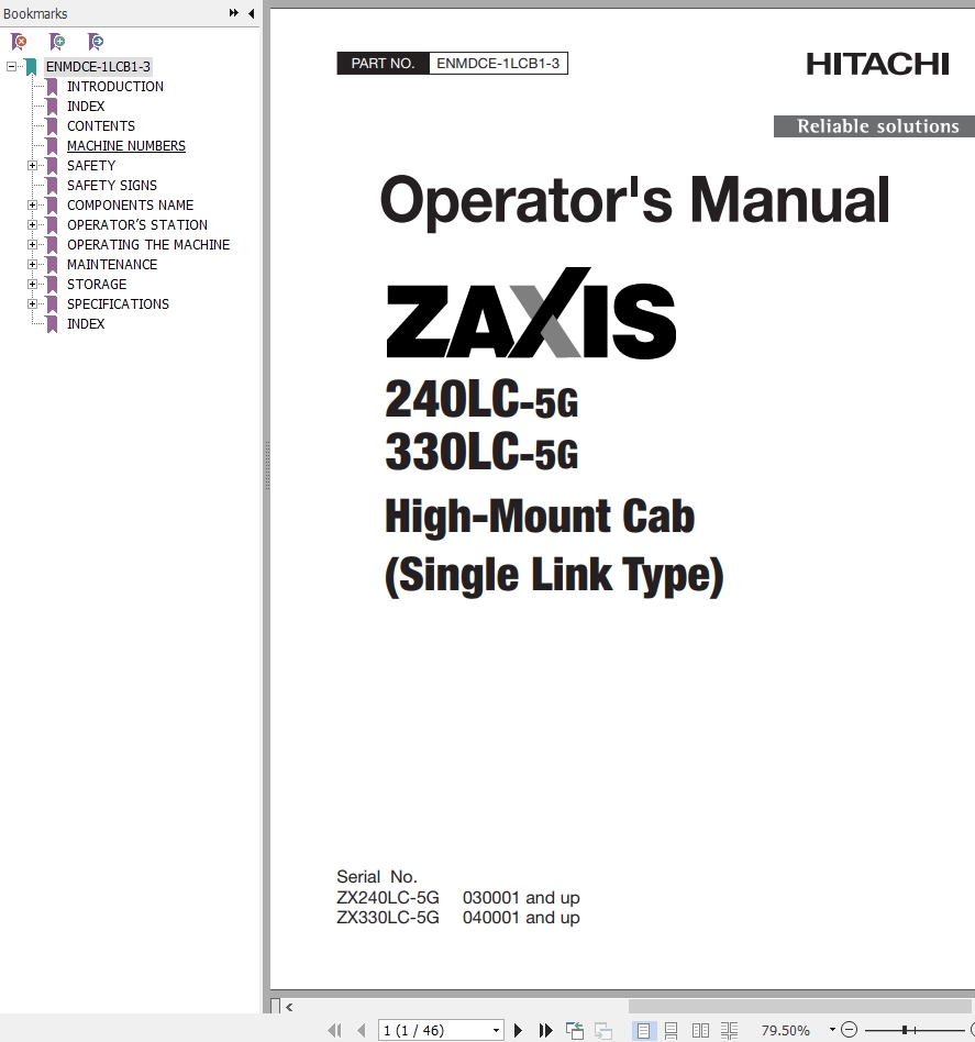Hitachi ZX240LC-5G ZX330LC-5G Operator's Manual ENMDCE-1LCB1-3