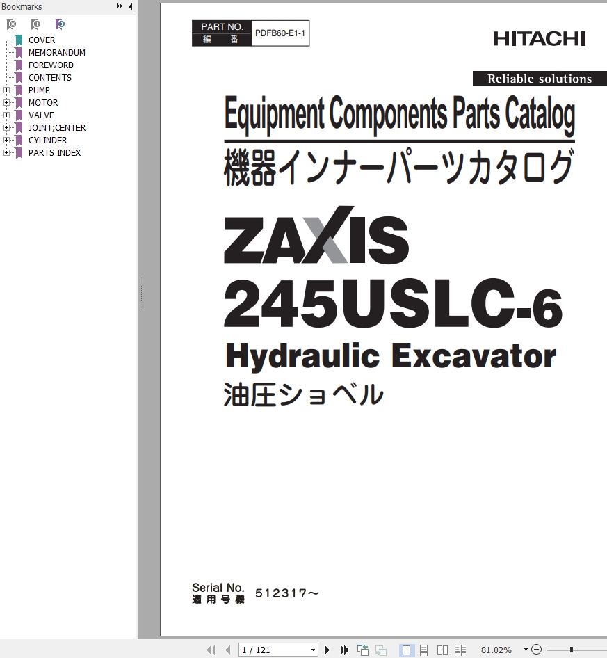 Hitachi ZX245USLC-6 Parts Catalog PDFB60-E1-1
