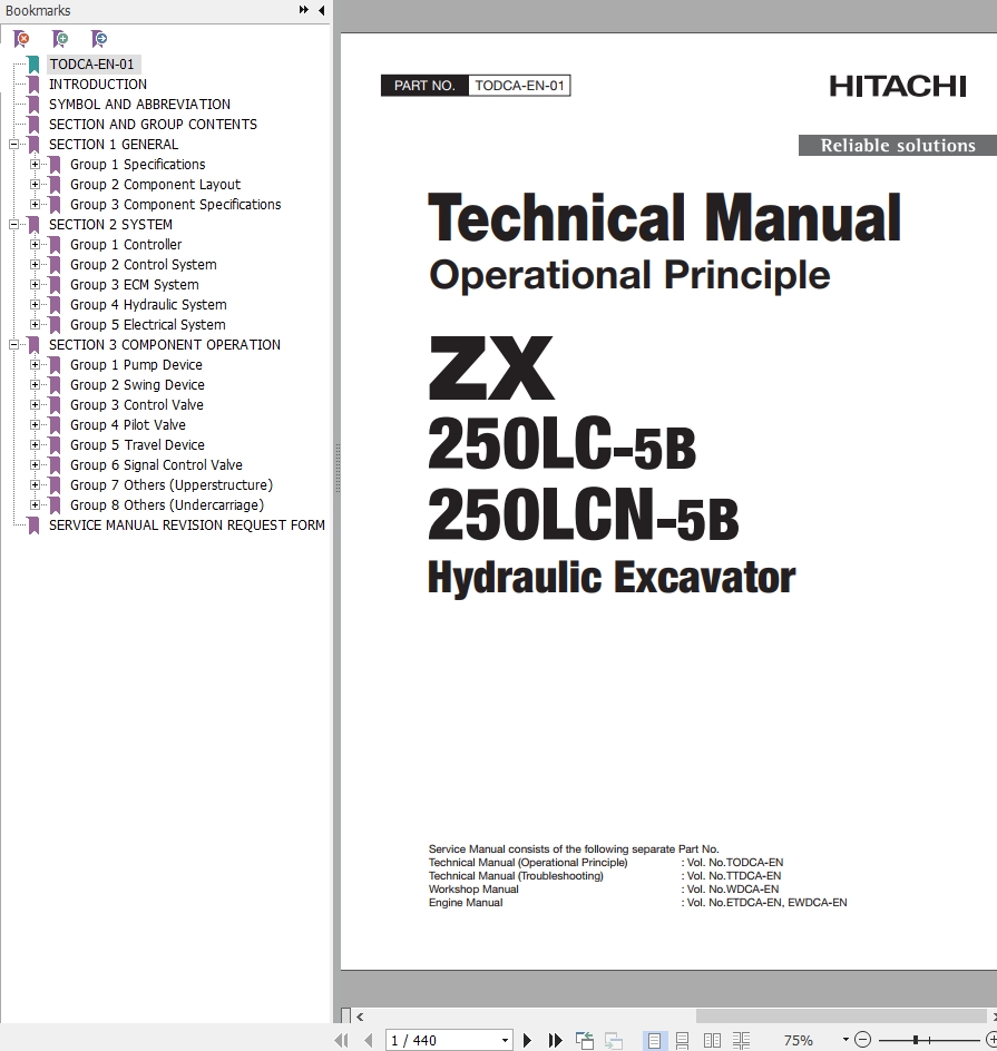 Hitachi ZX250-5B ZX250LC-5B Technical Manual TODCA-EN-01