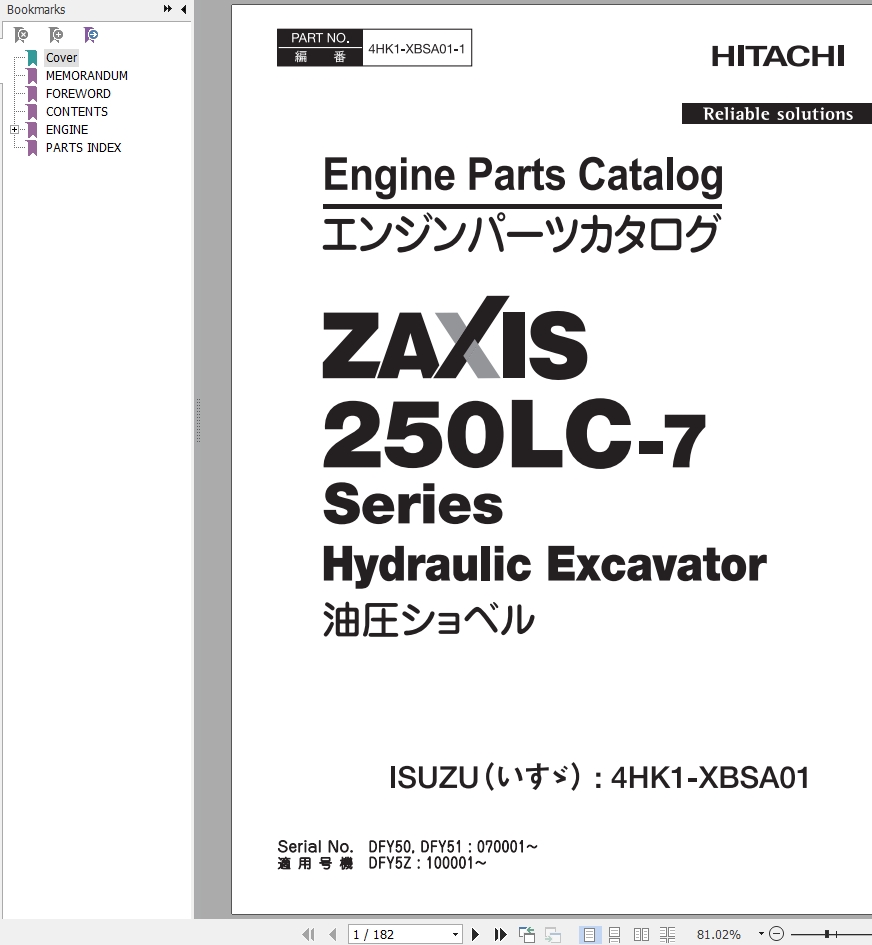 Hitachi ZX250LC-7 Engine Parts Catalog 4HK1-XBSA01-1