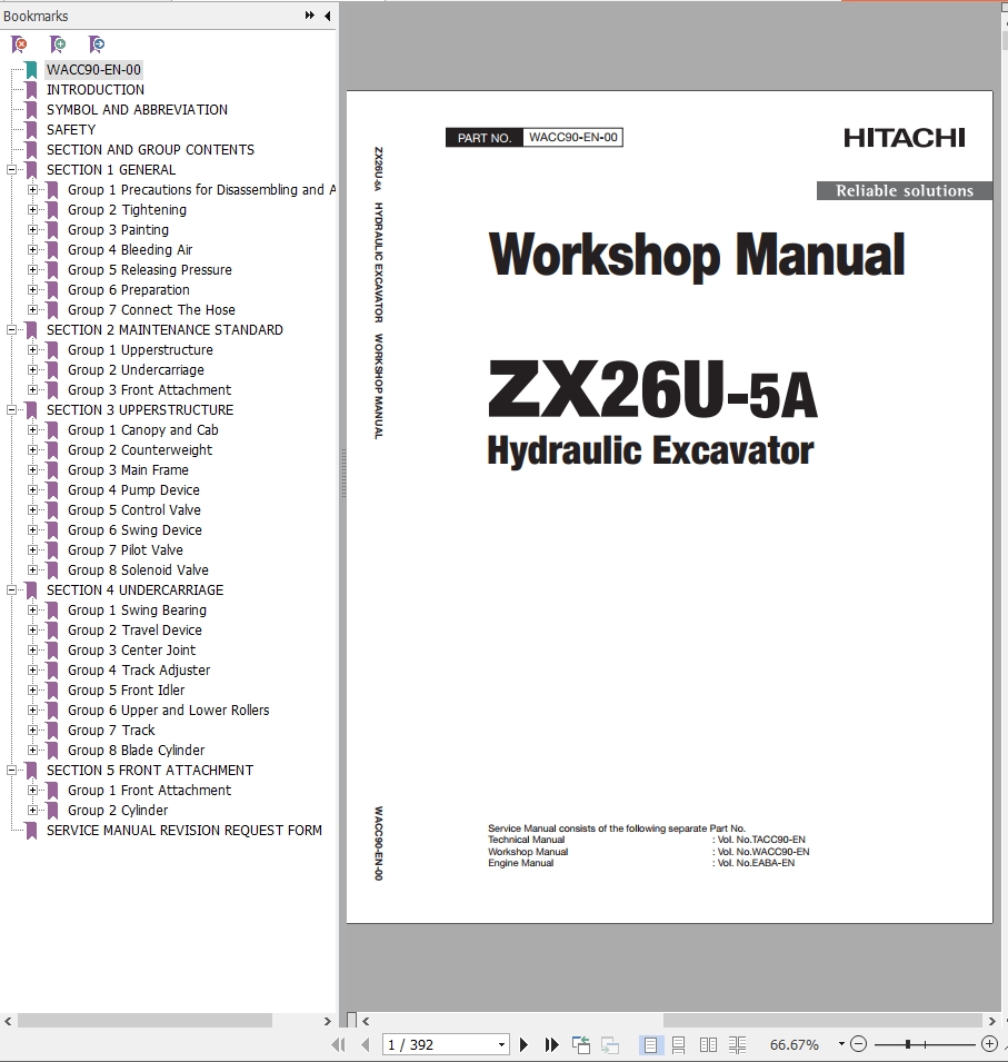 The Bookmarks of Hitachi ZX26U-5A Hydraulic Excavator Workshop Manual: