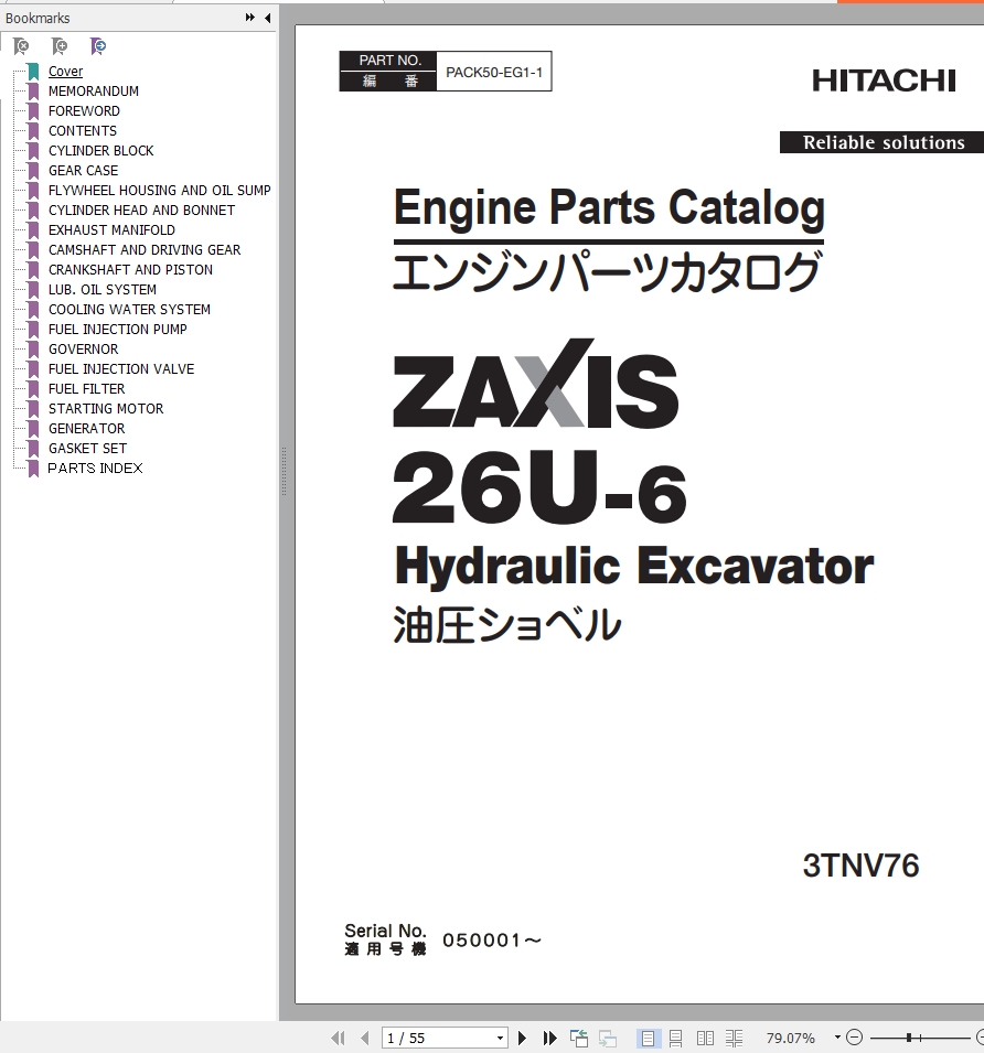 Hitachi ZX26U-6 Parts Catalog PACK50-1-1