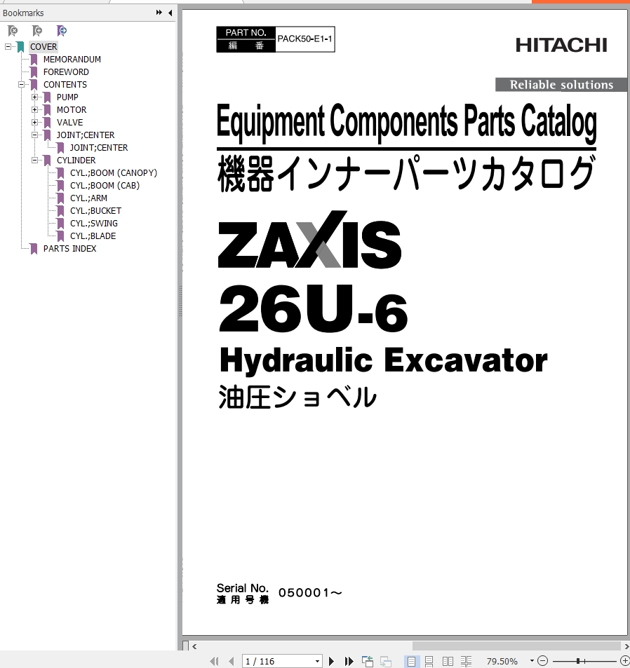 Hitachi ZX26U-6 Parts Catalog PACK50-1-1