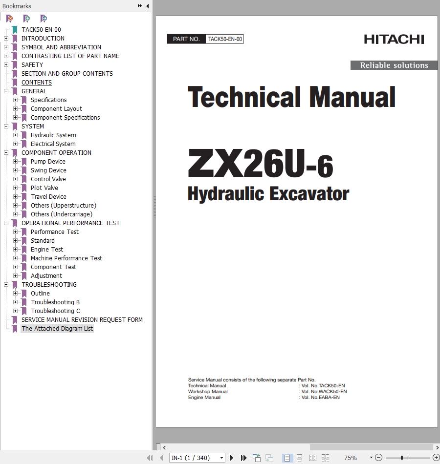 The Bookmarks of Hitachi ZX26U-6 Hydraulic Excavator Technical Manual: