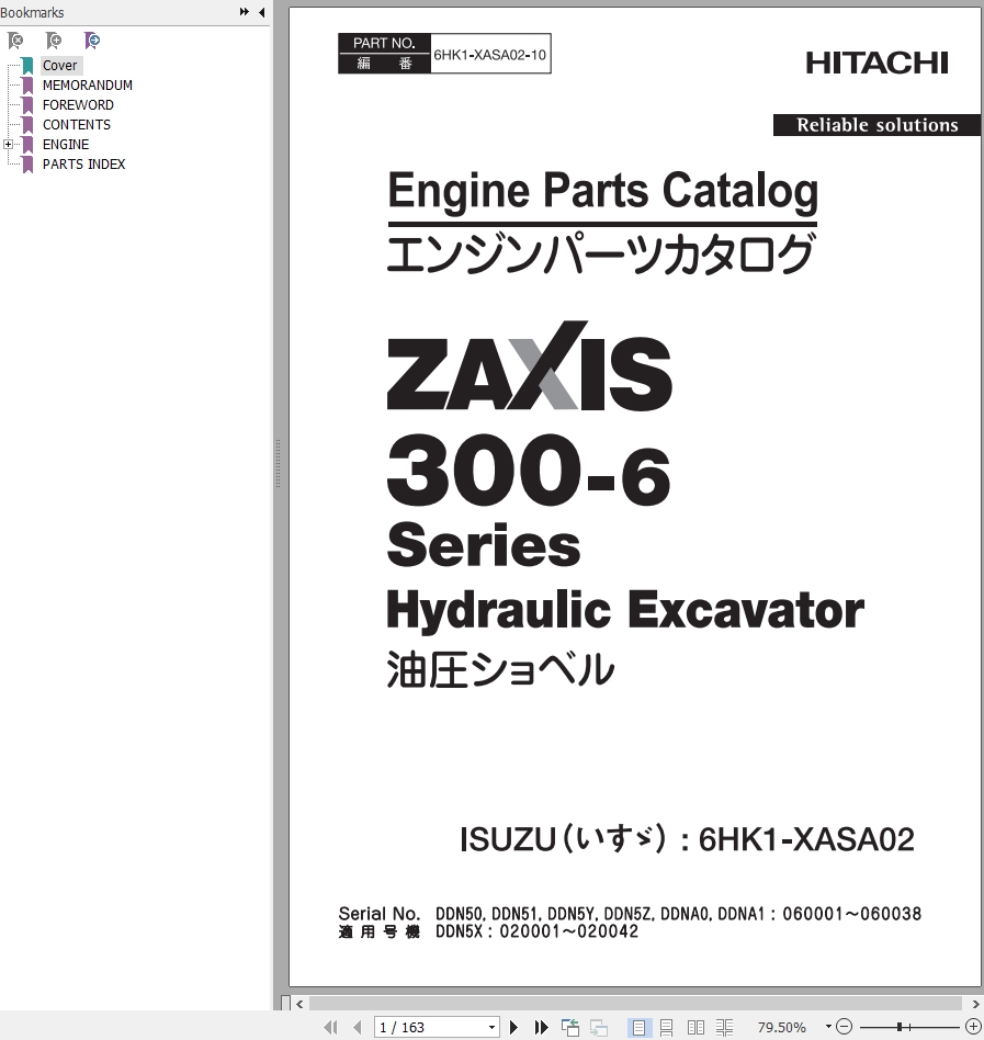 Hitachi ZX300-6 Series Engine Parts Catalog 6HK1-XASA02-10