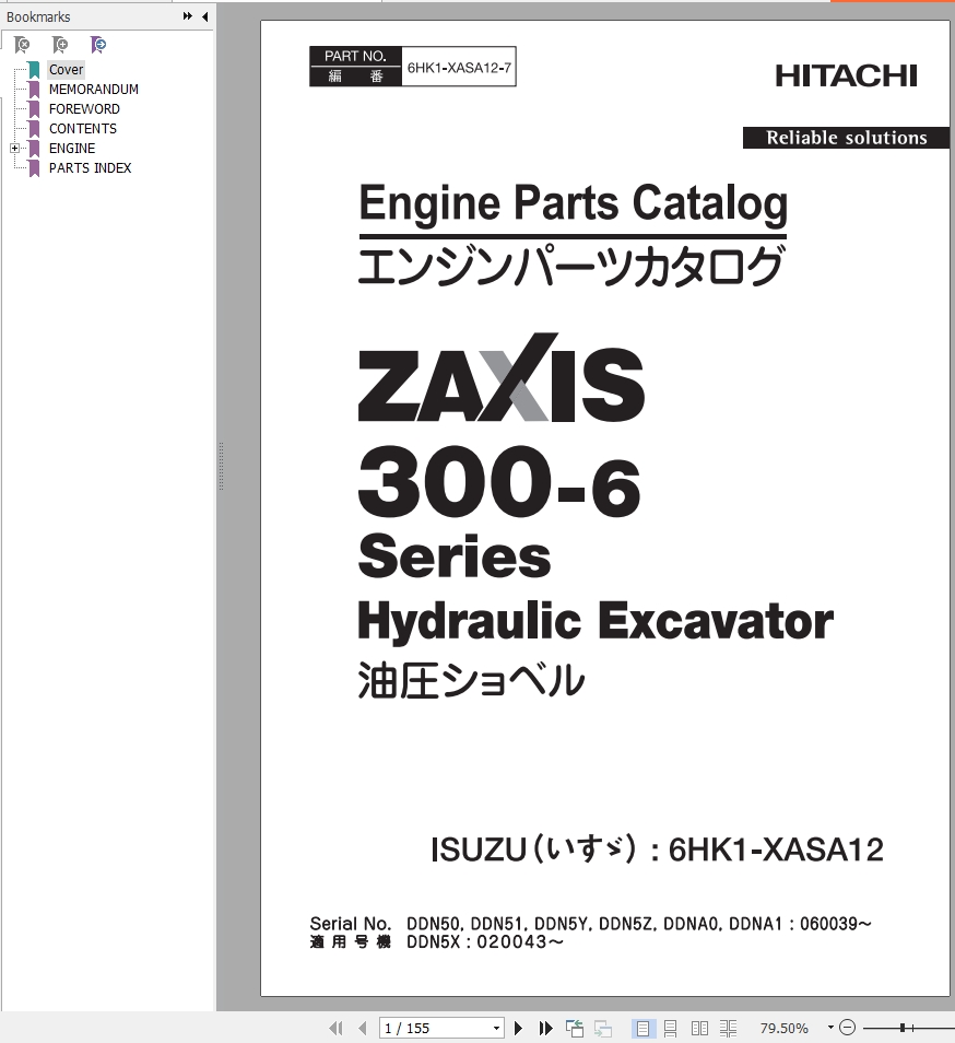 Hitachi ZX300-6 Series Engine Parts Catalog 6HK1-XASA12-7