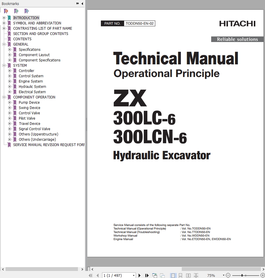 Hitachi ZX300LC-6 ZX300LCN-6 Technical Manual TODDN50-EN-02