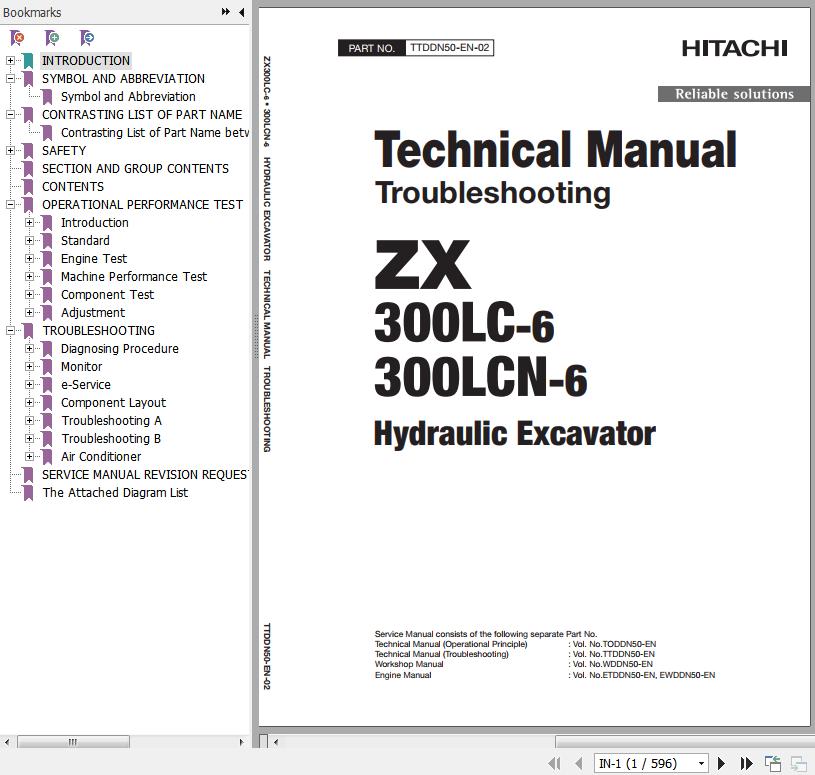 Hitachi ZX300LC-6 ZX300LCN-6 Technical Manual Troubleshooting TTDDN50-EN-02 596 Pages