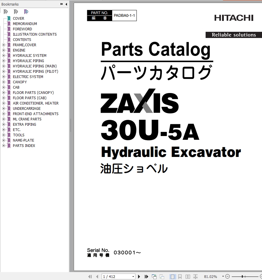 Hitachi ZX30U-5A Parts Catalog PADBA0-1-1