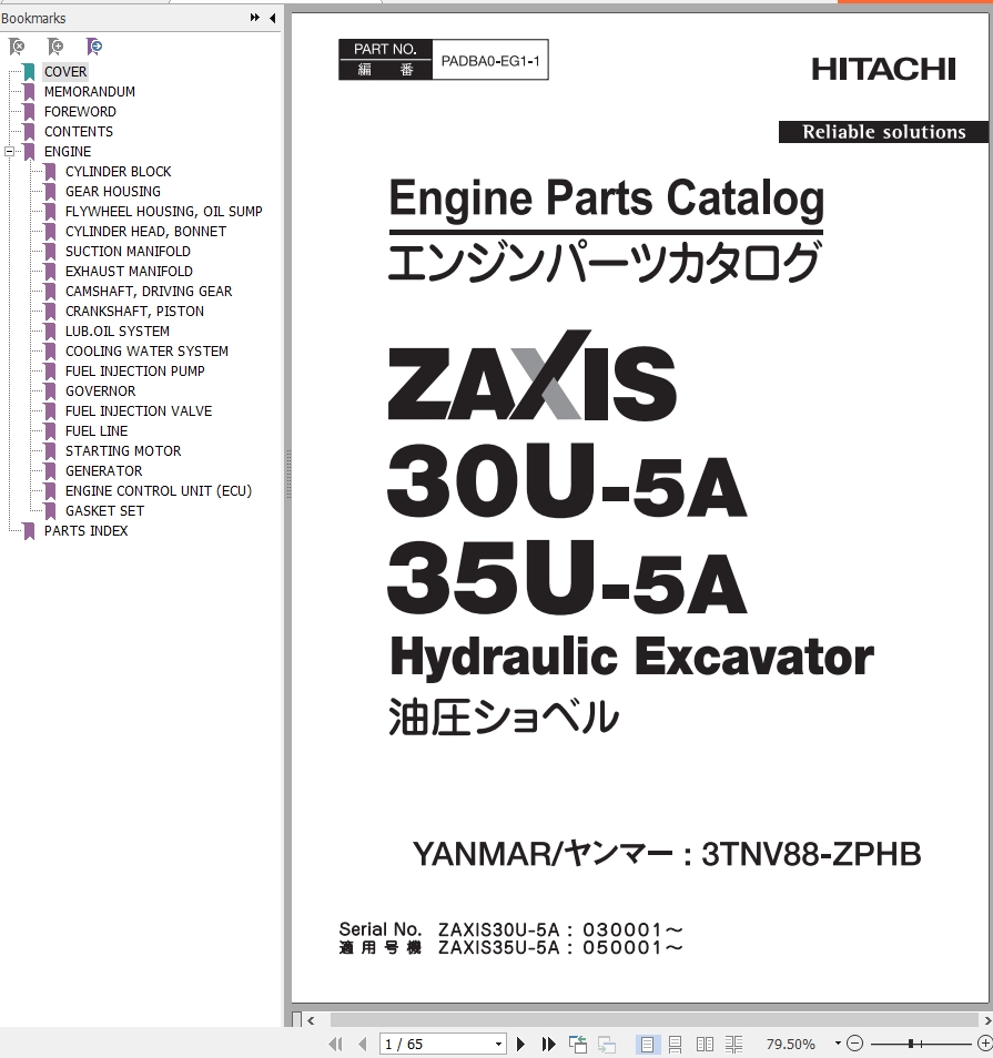 Hitachi ZX30U-5A ZX35U-5A Engine Parts Catalog PADBA0-EG1-1