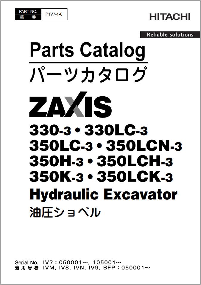 Hitachi ZX330-3 ZX330LC-3 ZX350LC-3 ZX350LCN-3 ZX350H-3 ZX350LCH-3 ZX350K-3 ZX350LCK-3 Parts Catalog P1V7-1-6