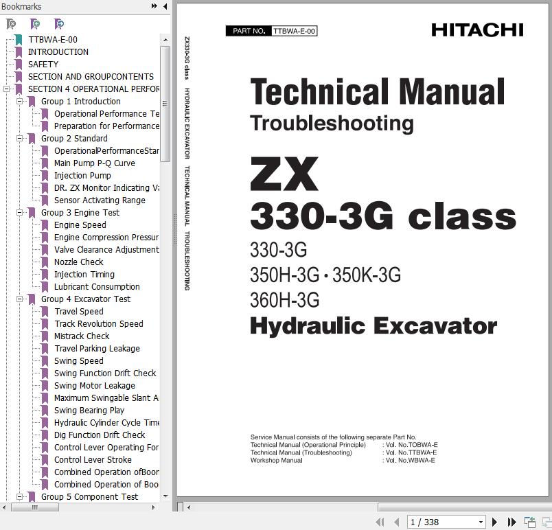 The Bookmarks of Hitachi ZX330-3G Series Technical Manual Troubleshooting: