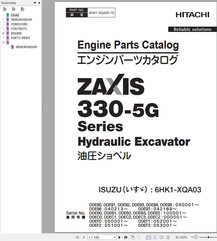 Hitachi ZX330-5G Series Engine Parts Catalog 6HK1-XQA03-10