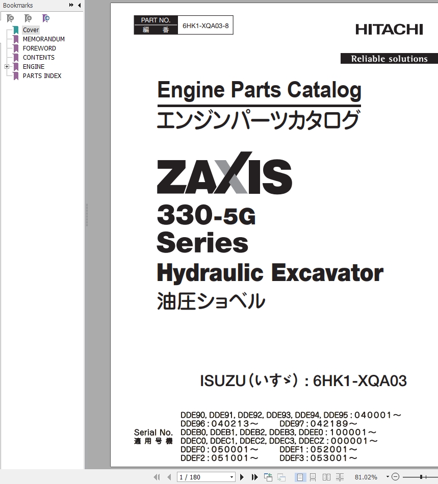 Hitachi ZX330-5G Series Engine Parts Catalog 6HK1-XQA03-8