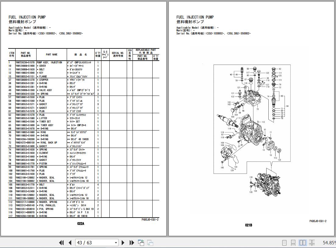 Hitachi ZX33U-5A 35U-5A 38U-5A Yanmar 3TNV88-BPHBB Engine Parts Catalog PADCJ0-EG1-2