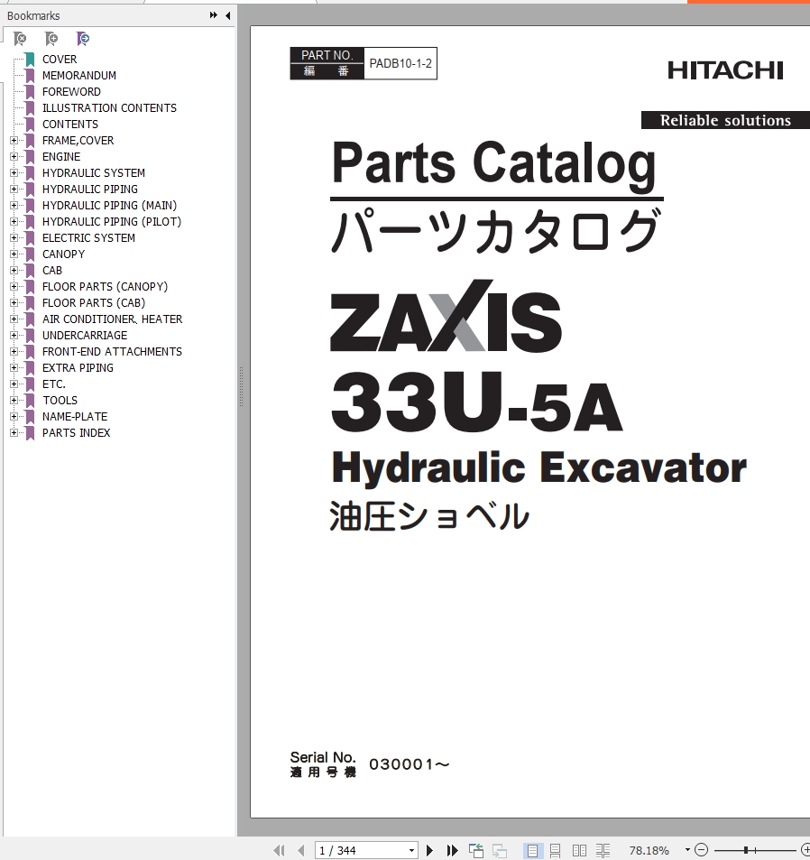 The Bookmarks of Hitachi ZX33U-5A Hydraulic Excavator Parts Catalog: